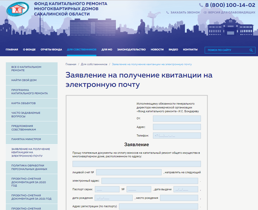 - Заявление на получение квитанции на электронную почту